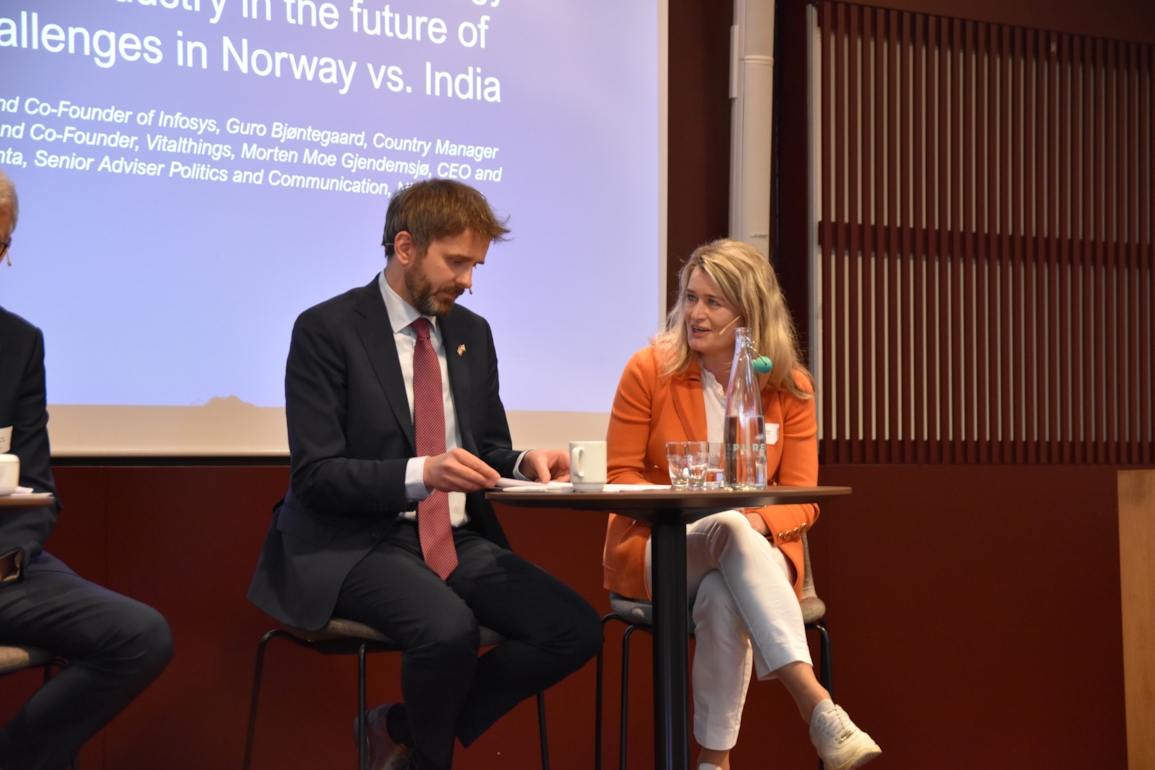LMIs administrerende direktør Leif Rune Skymoen deltok i en panelsamtale sammen med Nilekani, Vestre, Cathrine Capdeville og Martin Langaas. Panelet diskuterte hvordan legemiddel- og medtechindustrien kan bidra til å møte utfordringer i helsetjenesten, og hvordan norske aktører kan bidra globalt.
